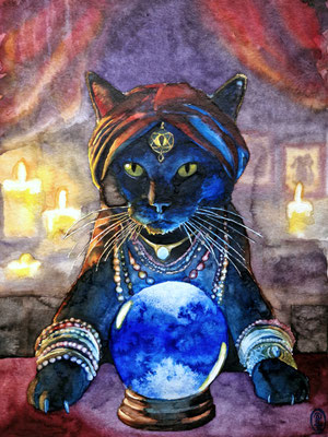The themes of my paintings revolve around the world of fantasy, the original creation of dreams and tales, which will draw you into its mysteries as you contemplate them.